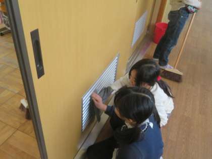 子ども達が頑張っていることのひとつに掃除かあります。子ども達の掃除をしている様子を見ていると,細かいところまで,丁寧に掃除をしている姿が見られました。