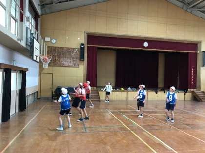 6年生の体育で「バスケットボール」に取り組んでいます。