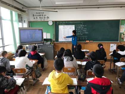 算数科の学習で,資料をもとに表やグラフに見やすく整理するということを学習してきました。この時間は,工夫されたグラフの読み方を学習しました。2010年と1980年と1950年のグラフを読み取り,それぞれの年の一番多い年代を読み取り,それから考えられることを発表し合いました。