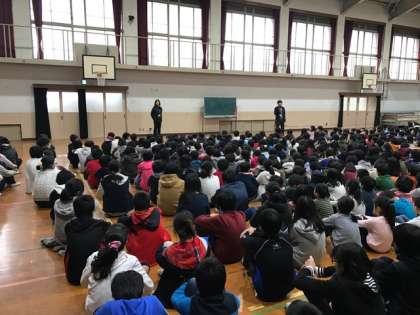 1月17日(水)に避難訓練を行いました。今回は,休み時間に訓練を行いました。地震が起きた時には,まず自分の身を守るということ,次に,避難場所まで安全に移動することが重要です。そのために,学校の中では,放送をしっかり聞くことと,「おはしもて」(おさない・はしらない・しゃべらない・もどらない・ていがくねんゆうせん)をしっかり守ることを意識して訓練を行いました。