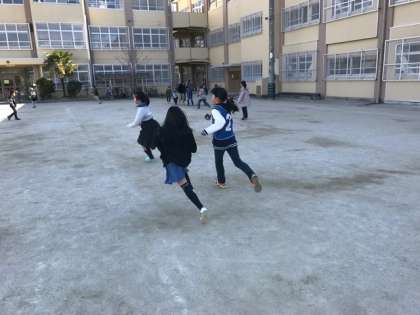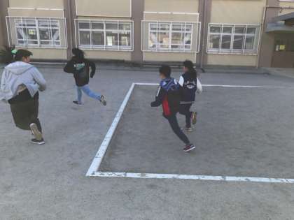 遊び係の子ども達が企画して,おにごっこをしました。寒い中でしたが,みんなで元気よく遊ぶことができました。