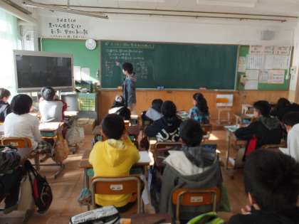 6年生の算数科で,組み合わせや並べ方を順序よく整理して調べる学習に取り組んでいます。表や図に組み合わせや並べ方を表して,答えが何通りあるかを考えていきます。組み合わせにもれがないように,分かりやすいやり方を考えて伝え合っていました。