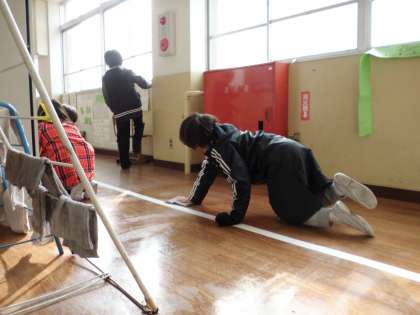 昼休みに外で元気に遊んだ後は,みんなで掃除をがんばります。ほうきで隅々までゴミを掃いたり,ぞうきんでしっかり水ぶきしたりします。学校がきれいになるように,寒くても最後までがんばっていました。