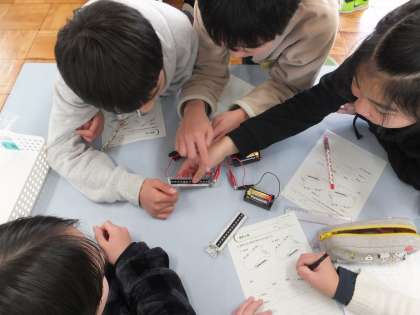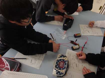 電気の性質とその利用の学習を積み重ねてきた子ども達。身の回りには,電球やテレビ,アイロンなど,様々な電化製品があります。これまでに,電気はためることができたり,光や音に変えたりする性質があることを実験から学んできました。この日の実験では,電熱線を使った実験で,電気が熱に変えられることを学びました。当たり前のように使っている物でも,昔の人が発明したことに感動する子どもたちでした。