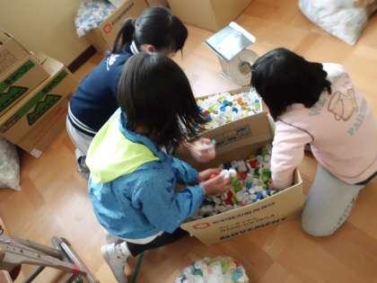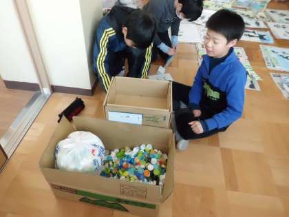 環境委員会の5・6年生が全校のみんなに呼びかけて行うことになったエコキャップ集め大会。今日は学年ごとに何キログラムもってきてくれたのかを環境委員会で計量しました。たくさんエコキャップが集まり,環境委員会のみんなも大忙しでした。持ってきてくれたみなさん,ありがとうございました。