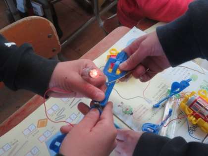 理科の学習で電気の通り道にいろいろな物をはさみ,どんな物が電気を通すか通さないか調べました。ガラス,銅,木,鉄,プラスチックなど,いろいろなものを調べました。そして最後に,金属は電気を通すことが分かりました,