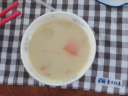 給食に,ぞう煮風味噌汁が出てきました。ぞう煮は,1年の無事を願って食べます。ぞう煮には,いろいろな具材が入っていました。給食では,もちのかわりにふわふわだんごが入っていました。給食室で一つずつ丸めて作られています。