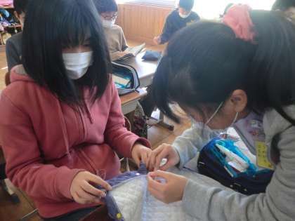 家庭科では布の特性を生かした作品作りに励んでいます。