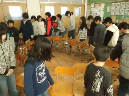 2月7日(水)に今年度最後のたてわりあそびをしました。5年1組教室に集まった子どもたちは,「いすとりゲーム」をしました。何度も遊んできただけあって,最後は違う学年の子とも仲良く会話する場面も見られました。