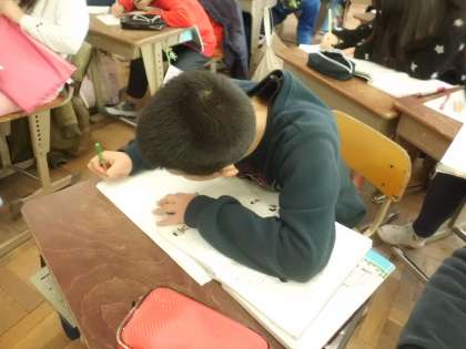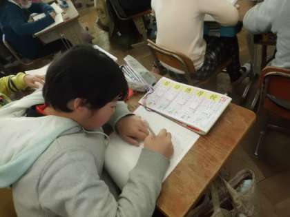 2月9日(金)は研究発表会。5校時の算数科の授業前に,漢字ノートに取り組む子どもたち。集中力を高めて書いている姿が印象的でした。