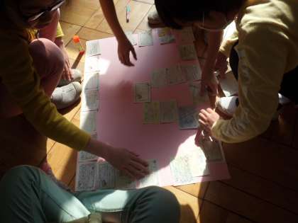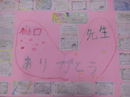 給食週間では,給食でお世話になっている人たちにメッセージを送ることになりました。5年生は樋口先生へメッセージを送ります。書いたメッセージを上手にレイアウトする子どもたち。とても素敵な作品が出来上がりました。