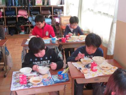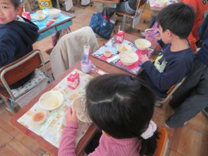 てっぱいは,いろいろな食材を白みそと酢,さとうで作った「酢みそ」をかけたり,混ぜ合わせたりして食べる料理です。給食では,かまぼこ,油あげ,人参,こんにゃくを煮て,手作りの酢みそをかけて食べました。