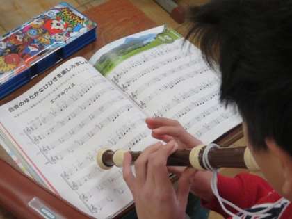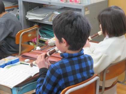 楽譜を見て階名唱したり,リコーダーで演奏したりしました。次は,副次的な旋律の演奏の練習です。
