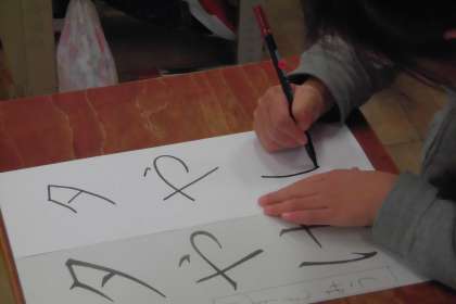 久しぶりに,フェルトペンを使って書写の学習を行いました。「夕やけ」という言葉を一文字一文字丁寧に書きました。大きさやはね,払いなど,気を付けるところを意識して,みんな集中して取り組むことができました。今日書いた作品は,校内書写展で掲示します。お楽しみに。