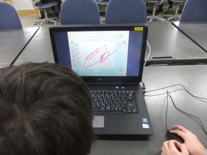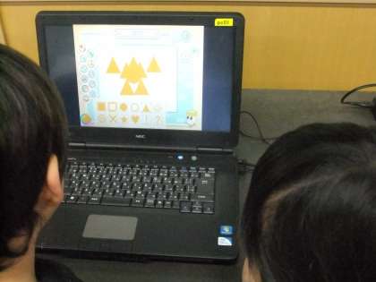 2年生は,コンピュータ室で,パソコンの使い方を学習しました。電源のつけ方,消し方などペアの友だちと協力しながら楽しく活動できました。パソコンで絵を描くソフトを使って,好きな絵やマークを作ることができました。