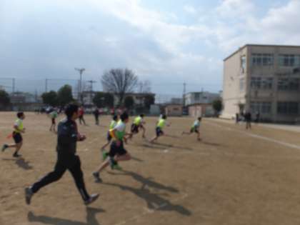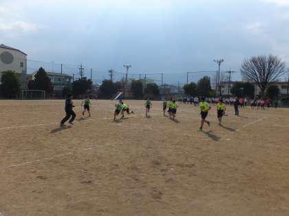 17日(土)にタグラグビー部の南支部交流会が行われました。これまで練習してきたパスやステップでトライを何本も決めていました。ディフェンスの時には,それぞれのマークを確認し合い,必死でタグを取りに行く懸命な守備を見せていました。チームでまとまって勝利に向かって良く頑張っていました。ご声援ありがとうございました。