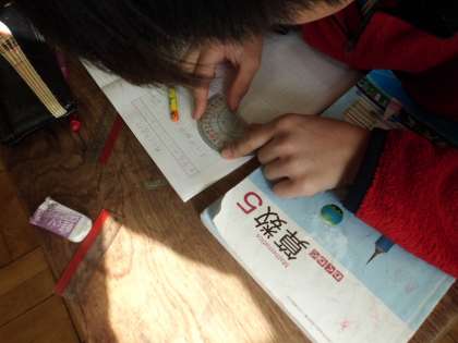 算数科「円と正多角形」では,正六角形の性質を調べました。分度器や定規を使って角度や辺の長さが等しいことについて知ることができました。