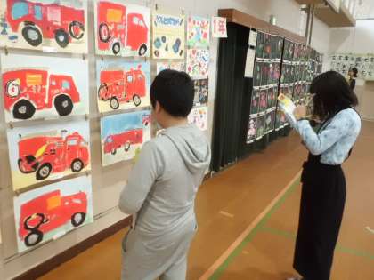 造形展・書写展への鑑賞に行った子どもたち。各学年の作品の見どころや心に残った作品とその理由を考えながら鑑賞していきました。迫力のある作品に注目したり,材料の使い方に注目したりと子どもたちは自分なりの視点をもって鑑賞することができました。