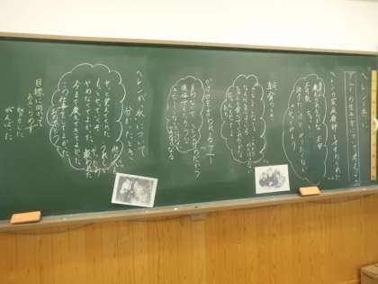 道徳「ヘレンと共に」では,ヘレン・ケラーの家庭教師アニー・サリバンの生き方から目標に向かってあきらめず努力することの大切さについて考えました。たくさんの意見を交流する中で,努力することの価値が深まったようです。