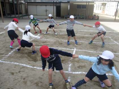 体育科の学習では,「おにあそび」「すもうあそび」の学習をしています。