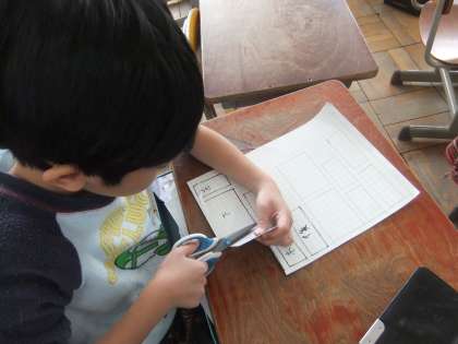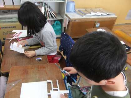 算数科で「はこの形」を学習しました。工作用紙で箱を作りながら,長方形や正方形からなる面が6面あることや,面どうしのつながりから,同じ面が2種類ずつあることを実感できました。