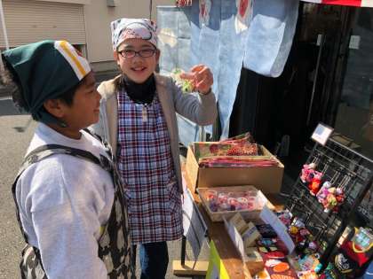 販売体験で「サロン川崎」さんにお世話になりました。販売だけでなく,商品の袋詰めなど,普段あまり見ることのできない仕事も体験させていただきました。ニコニコと楽しそうに働いている姿が印象的でした。