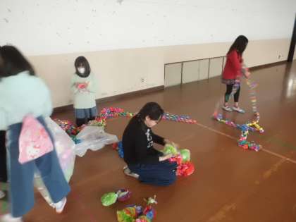 3月9日(金)のお別れ集会の後,体育館に飾りつけたチェーンや花を丁寧に取り外していく子どもたち。見えないところでもがんばろうとする姿に成長を感じます。