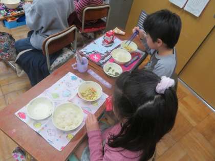 給食にあげたま煮が出てきました。あげたま煮に使われている油あげは,体をつくるたんぱく質が多く含まれています。油あげは,みそ汁に入れたり,煮たり,いろいろな料理に使われています。