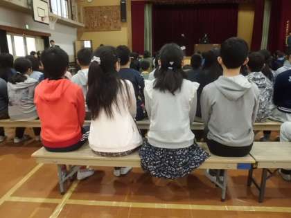 6年生徒の卒業式の合同練習。証書授与の間も背筋がまっすぐに伸びています。さすが,5年生!