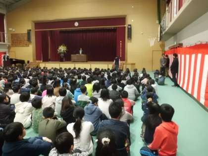 3月23日(金)に修了式を行いました。代表して修了証を受け取る5年生の子。きちんとした態度に1〜4年生もあこがれの視線を送っているようでした。