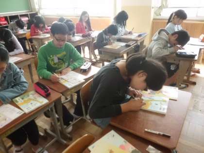 6年生の教科書が配られました。丁寧な字で書こうとがんばる姿が見られましたよ。
