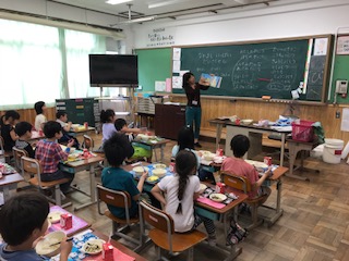今まで6年生が給食の時間に1年生のサポート役としていろいろと教えてくれたり手伝ってくれたりしましたが,今日から1年生だけで給食当番のお仕事をすることになりました。人数分の入ったおかずやご飯,牛乳を給食室からみんなの待つ教室まで友達と協力して運びます。その重さとともに,責任の重さも1年生はしっかり感じているようで,慎重に慎重に教室まで歩きました。がんばったからかな?今日は図書室の先生が教室に来てくださって,みんなが食べているときに楽しい絵本を読んでくださいました。
