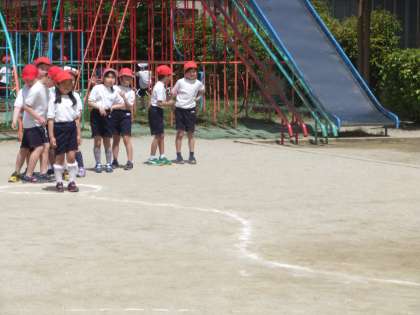 天気のいい日に,体育科で体ほぐしをしました。鉄棒に触ったり,転がしドッジをしたり…。子どもたちが一番喜んだのが,「ドンじゃんけん」です。出会った時にじゃんけんをして,相手の陣地に行けそうでたどりつけないドキドキ感が楽しかったようです。