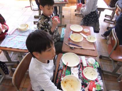 2年生になって,少しずつ食べる量が増えてきました。好き嫌いがある子もちょっとずつ頑張って食べています。旬の野菜を味わって食べています。