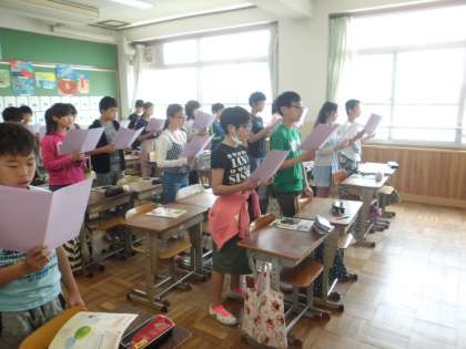 音楽科では「明日への手紙」に挑戦しました。かなり難しい歌ですが,子どもたちは懸命に頑張って歌っていました。その後はリコーダーの練習。「きらきら星」を使って,1つ1つの音を正確に出していきました。