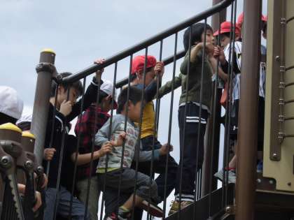 お弁当を食べた後で,梅小路公園の遊具のある広場で,鬼ごっこをしたり,すべり台を楽しんだりして思いっきり遊びました。