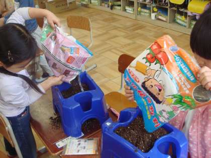 子どもたちは,種をなでながら,やさしく話しかけていました。