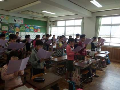 音楽科では「明日への手紙」の二部合唱に挑戦。副次的な旋律の音程を確かめながら歌っていきました。