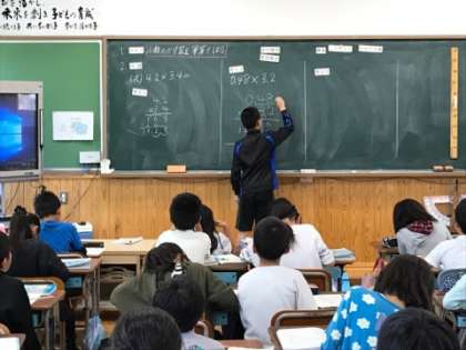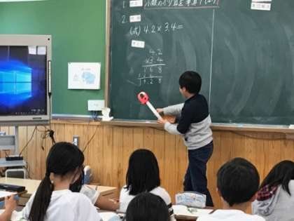 算数では自分の考えをみんなの前で説明します。