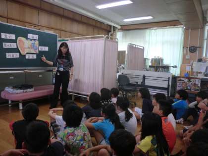 検査の前に耳の構造について,養護の先生から