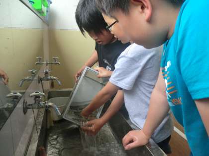 お昼休みに,生き物係のみんなが