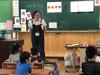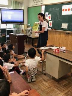 火曜日は「ENGLISH DAY」です。この日には掃除時間に英語の歌が流れたり,どんどんタイムに英語の楽しい勉強をしたりします。今日は1年生の教室にアメリカから来られたモンタナ先生が来てくれました。英訳された日本の絵本を子どもたちに読んでくれました。子どもたちは絵をじっと見ながら,英語の雰囲気を楽しんでいました。モンタナ先生は,これからも各クラスに順次まわってこられます。