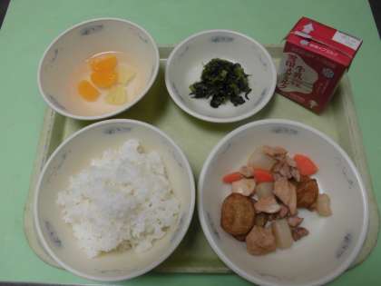 給食のフルーツ寒天は手作りで作っています。配膳する時は,液体の状態ですが,食べる時には,固まっている状態に一年生は,とても驚いていました。みんな,最後まで味わって食べていました。