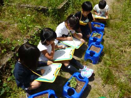 芽の形や色,触った感じなどを観察して,カードに記録しました。
