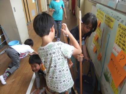 クラスで協力して掃除を頑張っている様子です。掃除の後は,ぴかぴかになって,教室も廊下も気持ちがいいです。