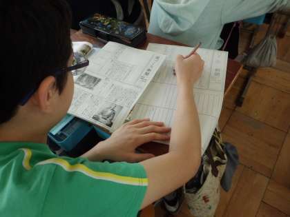 社会科「天皇中心の国づくり」では,学習問題のまとめをした後,新聞づくりに挑戦しました。お手本をもとに,自分なりの工夫をしつつ書き上げていきました。