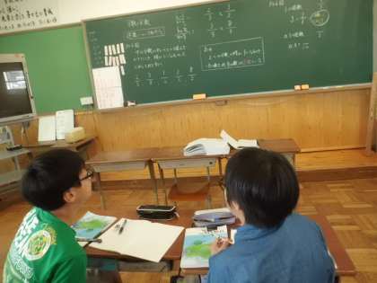 算数科「分数×分数」では,逆数について学習しました。学んだことを隣の人に説明する中で,逆数についての理解を深めていけました。
