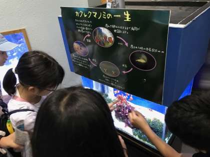 サンゴ礁のコーナーでは,映画に出てくるような色とりどりの魚達に感動する子ども達でした。