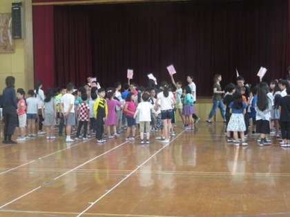 5年生がたてわりグループで集まれるようにカードを持ってくれました。また6年生は,自分のたてわりグループを迎えに行ってくれました。たてわり活動では,高学年がリーダーシップを発揮しています。