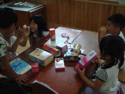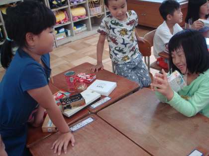 目を閉じて,手だけで触ってどんな形か当てるゲームをしました。